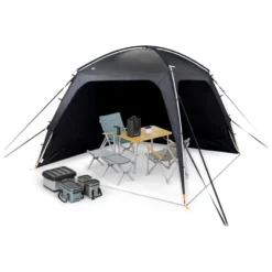 De robuuste partytent van Bo-Camp is absoluut de perfecte feesttent voor buitenactiviteiten en evenementen voor kleine groepen! De tent biedt beschutting en privacy, maar tegelijkertijd laat hij lucht binnen! Deze tuintent heeft een extreem massief tentdoek, gemaakt van polyester met een dichtheid van 160 g/m². Het doek is waterdicht (met een waterkolom van 1.500 mm), uv-bestendig en brandvertragend, maar heeft ook ventilatie aan de bovenkant. Dankzij de sterke stalen boogpalen en de stabiele voeten zorgen ze ervoor dat de tent zeer stevig en stabiel is. De Bo-Camp feesttent is gemakkelijk op te zetten en uit te breiden met verschillende zijwanden die met klittenband bevestigd kunnen worden. De partytent wordt compleet geleverd met scheerlijnen, haringen en een transporttas.Â