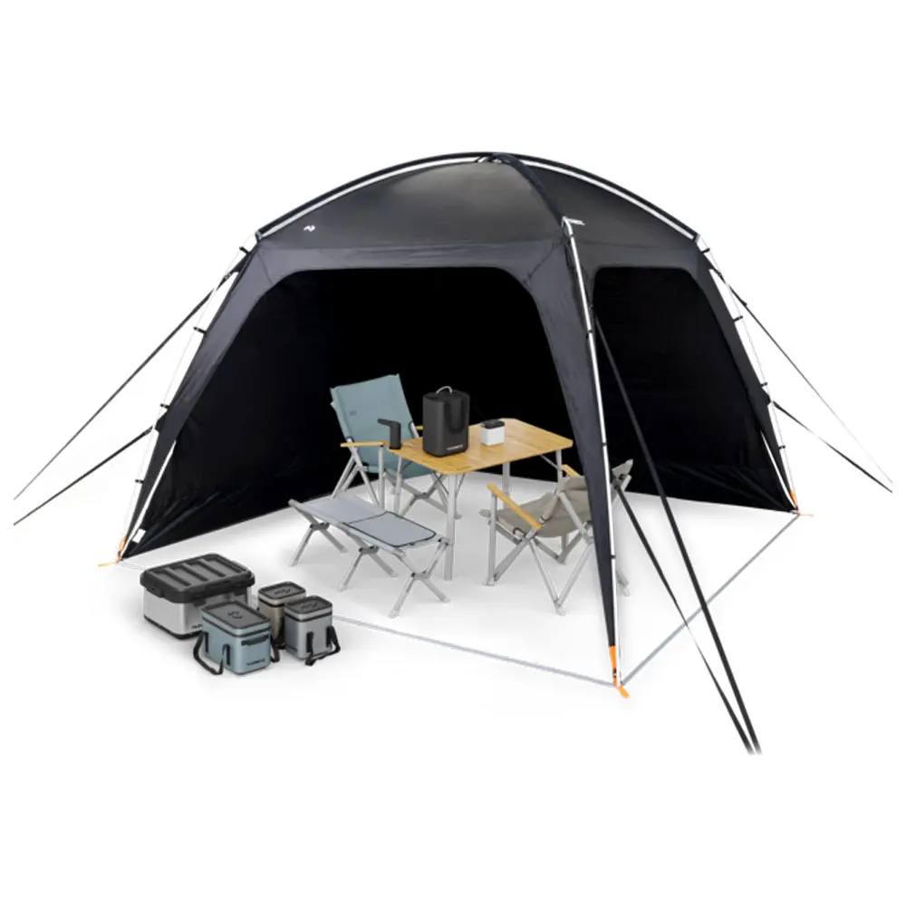 De Compact Camp Shelter van Dometic biedt uitstekende bescherming tegen weersomstandigheden en zorgt voor een droog onderkomen, ongeacht de omstandigheden. Dankzij de lichte en stevige aluminium constructie is deze shelter gemakkelijk te vervoeren en snel op te zetten. Het doordachte ontwerp maakt een snelle installatie mogelijk. Met twee zijwanden biedt de shelter extra bescherming tegen de elementen en verhoogt het de privacy. De Compact Camp Shelter is ideaal voor gebruik in een busje, maar ook perfect voor kamperen in de tuin of bij buitenevenementen, en biedt een combinatie van functionaliteit, stabiliteit en comfort.