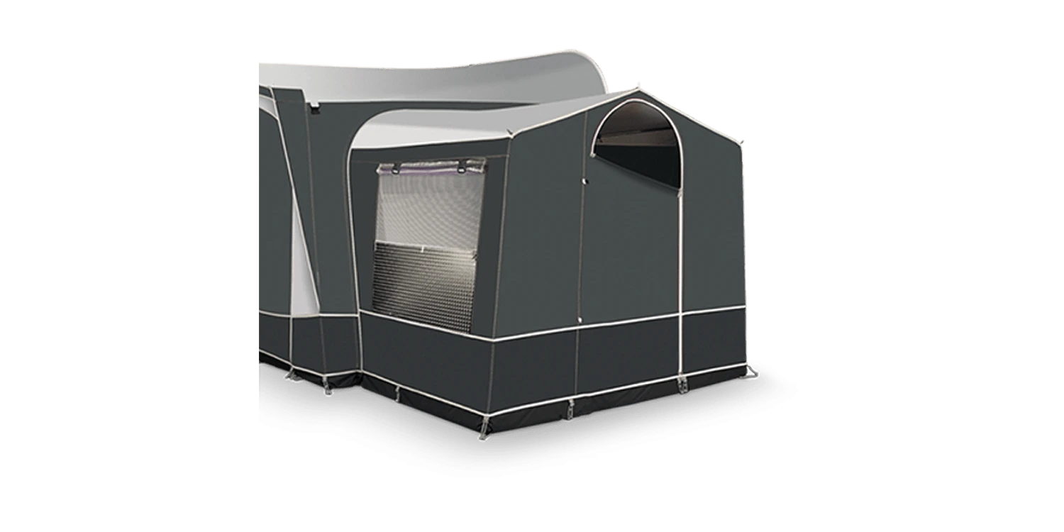 Beschikbaar in de kleurencombinaties antraciet/grijs, antraciet/groen en blauw/grijs, past de uitbouw naadloos bij je Monza voortent. Standaard wordt deze geleverd met een 25 mm stalen frame, maar je kunt ook kiezen voor een optioneel lichtgewicht ALU-frame. Bovendien is er de mogelijkheid om de uitbouw uit te breiden met een universele Doréma binnentent voor nog meer gebruiksgemak.