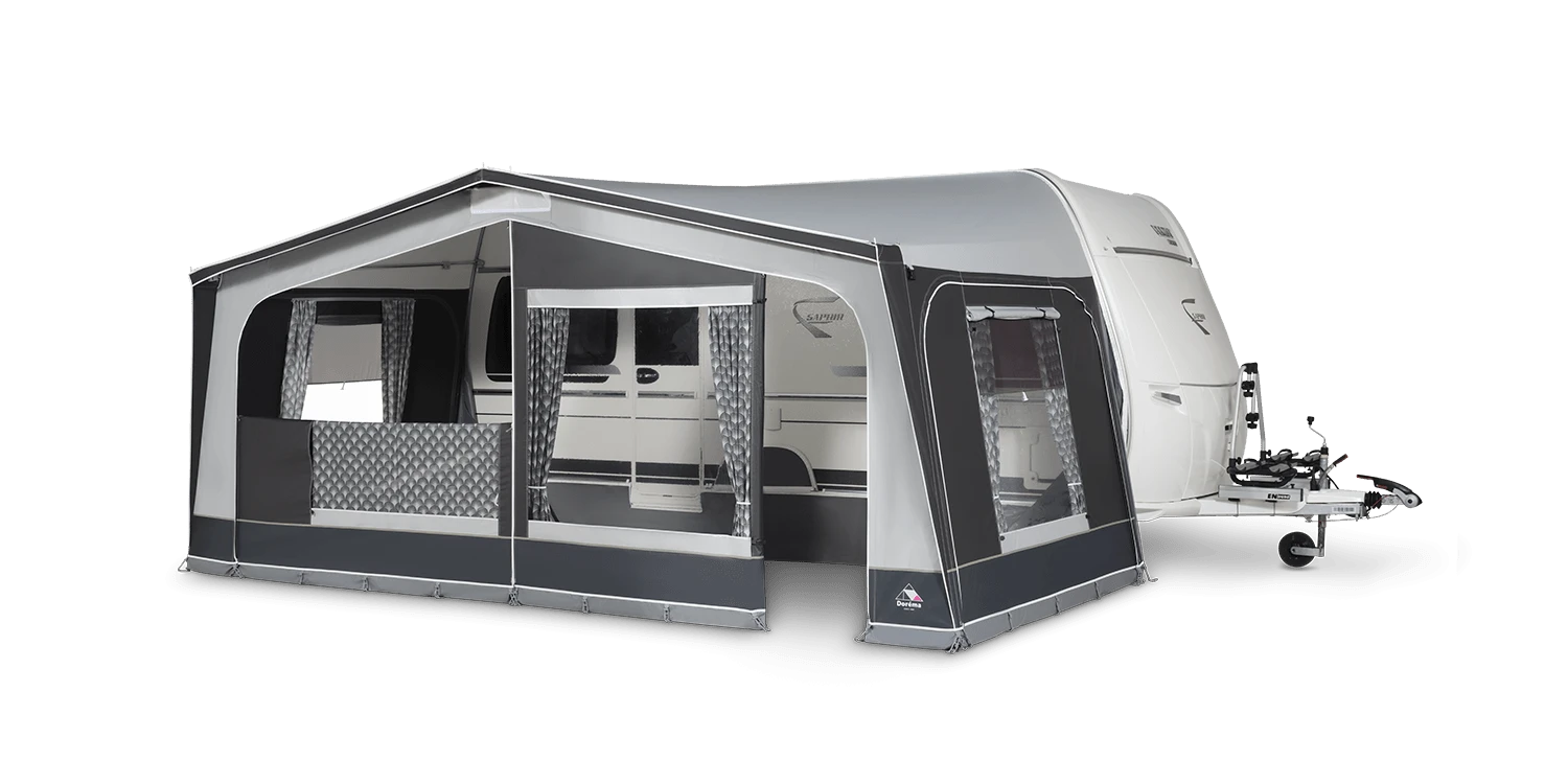 Maak je kampeerervaring compleet met de Doréma Monza 240, de ideale keuze voor elke kampeerliefhebber die op zoek is naar een betrouwbare, uitbreidbare en stijlvolle voortent.