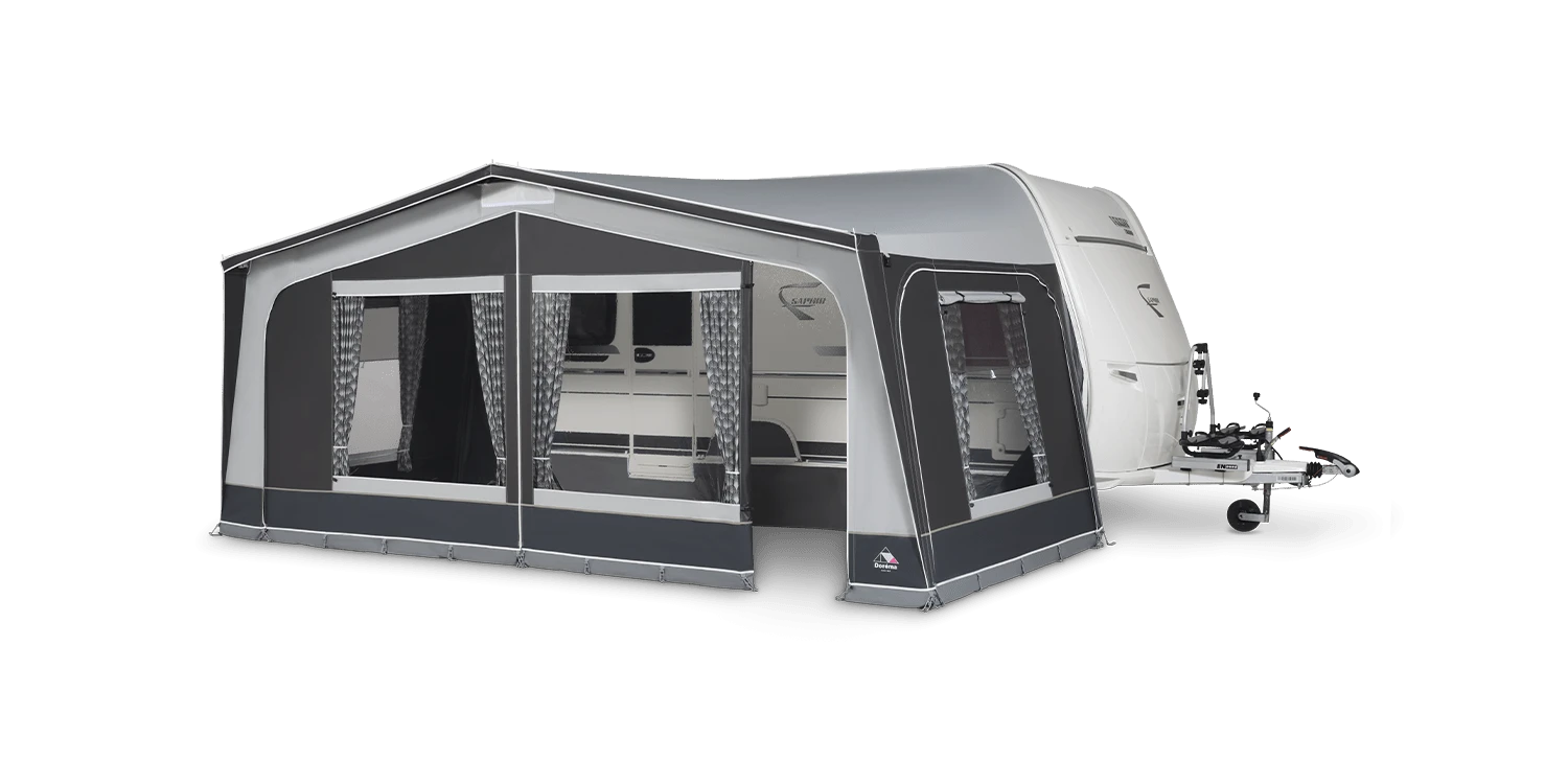 Ontdek de Doréma Monza 300, een voortent die zowel betaalbaar als ruim is, ideaal voor al je kampeeruitjes. Deze tent heeft een diepte van 3 meter en biedt een ruim leefgedeelte, voorzien van grote ramen en elegante gordijnen die zorgen voor een gezellige en gastvrije sfeer. De Monza 300 is ontworpen voor gemak en comfort, met volledig afritsbare voor- en zijpanelen en twee deuren, wat zorgt voor een flexibele indeling van de ruimte.