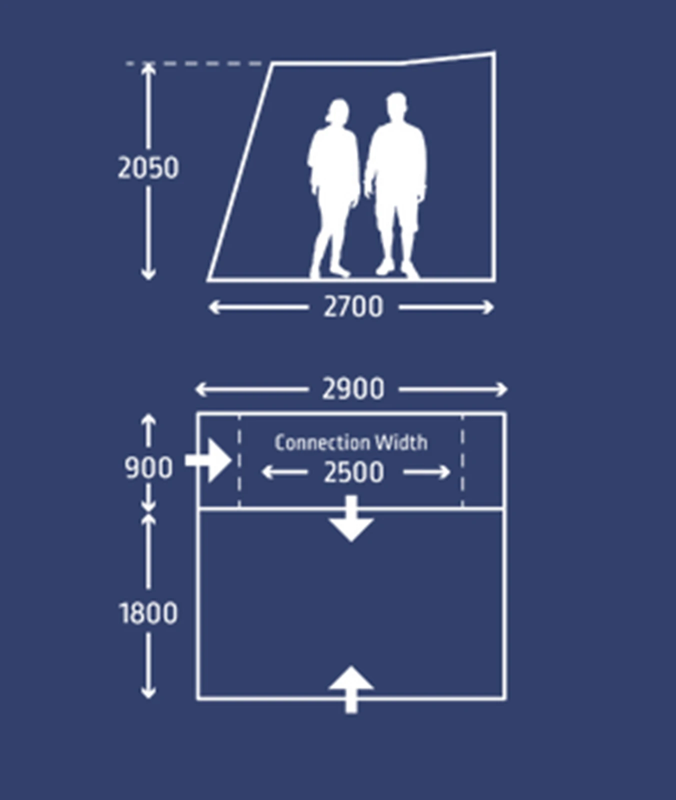 De stof die voor de buitentent is gebruikt is 68D polyester. Dit is niet minder waterdicht dan een grotere denier stof, maar helpt om de kleinere verpakkingsgrootte te geven. Eenvoudig op te zetten tunnelontwerp met een mooie grote luifel boven de voordeur die bescherming biedt tegen regen en zon.