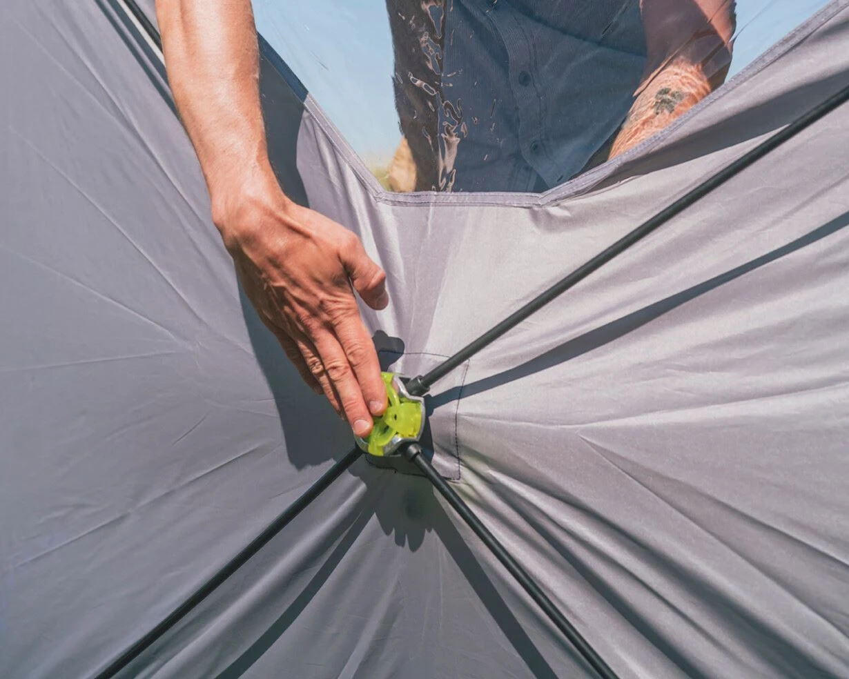 Rapid-pitch Lite System met windscherm en stokken die vooraf gekoppeld zijn