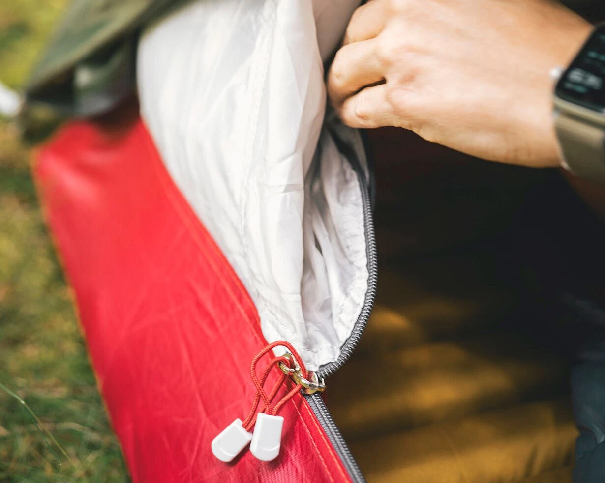 Met twee grote ingangen is het supergemakkelijk voor iedereen om in en uit te stappen zonder gedoe. Bovendien zorgen de ruime dubbele vestibules ervoor dat jullie allemaal je spullen en kookgerei kwijt kunnen zonder dat het binnen te krap wordt. De tent is stevig en betrouwbaar met vergrendelpunten en dubbele oogjes op robuuste banden die de interne stokken veilig op hun plaats houden, terwijl de dwarsstok veilig in een sterke stoksleeve zit.
