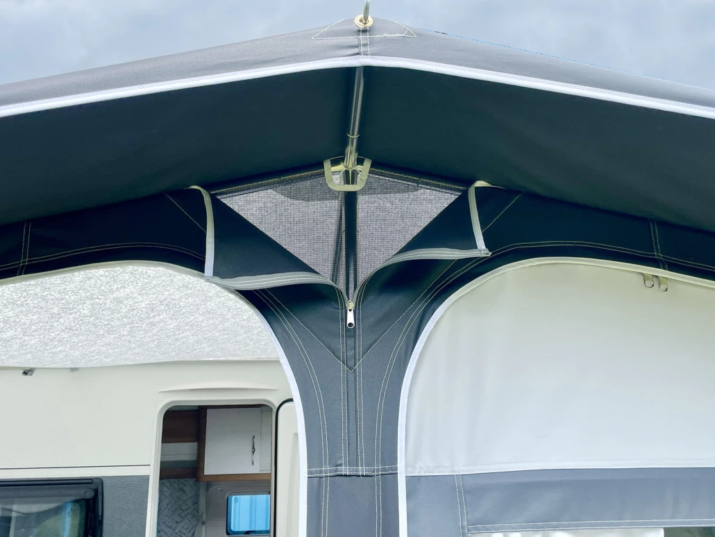 Deze ruime voortent van Walker heeft een diepte van 250 cm. De voortent heeft en mooie antraciete kleur en een strakke vormgeving. De afgedekte ritsen zorgen ervoor dat het een perfecte afwerking heeft. Het dak en de wanden zijn vervaardigd van hoogwaardig Ten Cate gecoat doek en het dak heeft een leuk printmotief. Deze voortent heeft een glasfiber frame. Je kunt de Dynamic 250 gebruiken als seizoenstent, maar met het glasfiber frame is het ook ideaal als een trekkerstent. De voortent is uit te bouwen met de Dynamic 250 uitbouw de luxe waardoor je extra opbergruimte hebt.Â