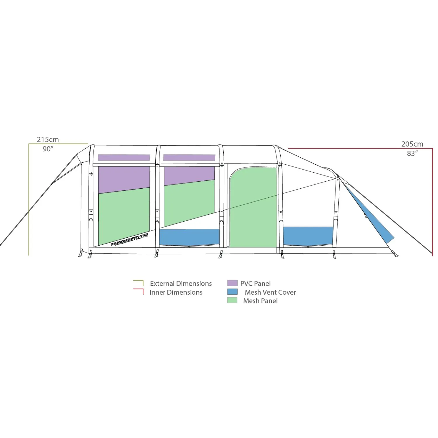 Ontdek de Zempire EVO TL V2, een opblaasbare tent die perfect is voor avontuurlijke gezinnen of kleine groepen tot vijf personen. Met zijn ruime interieur en stahoogte biedt deze tent het ultieme comfort en gemak tijdens je kampeertrips.